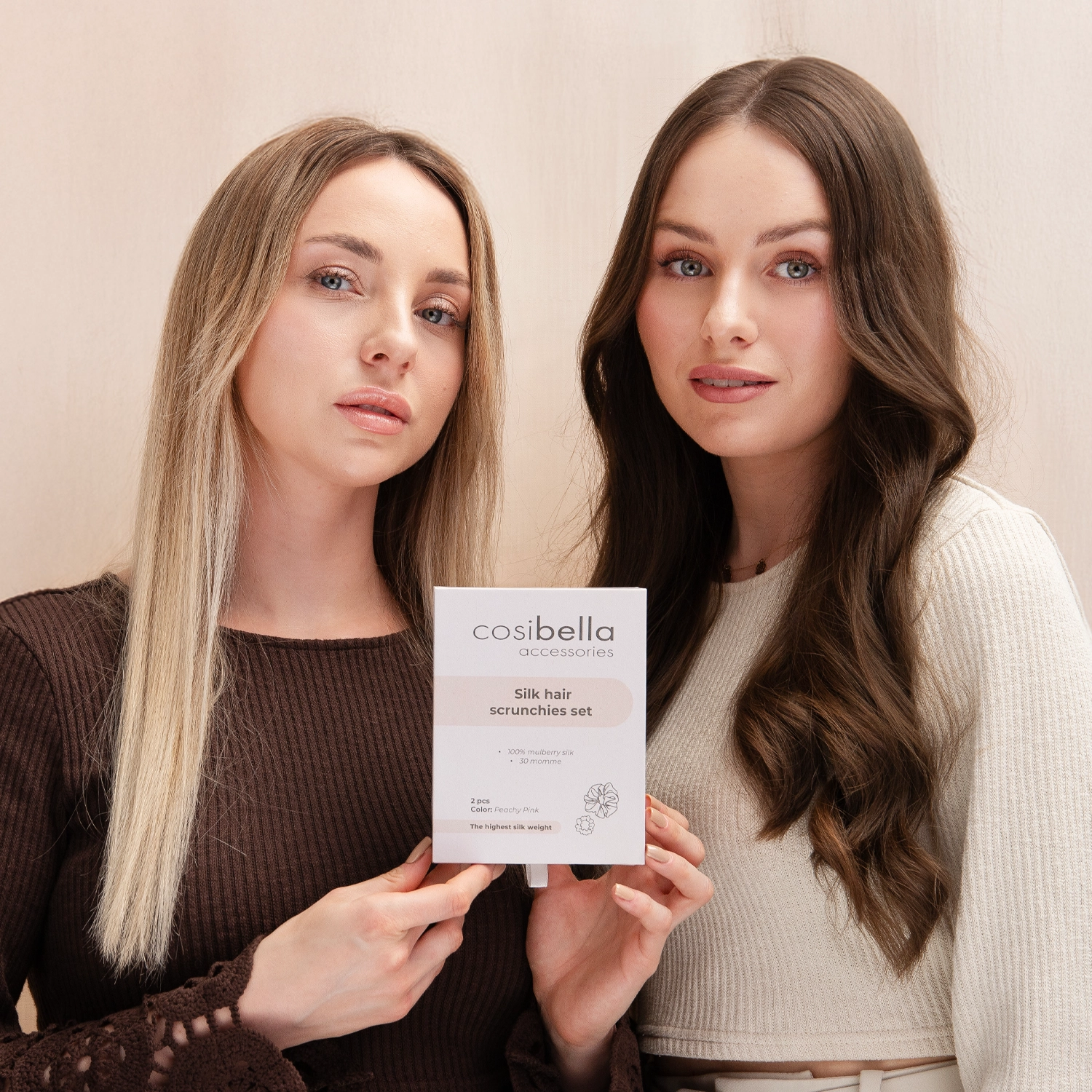 Cosibella Accessories - Sada hodvábnych gumičiek do vlasov - Peachy Pink - gumičky do vlasov z extra odolného hodvábu, s gramážou 30 momme. Balenie obsahuje širšiu (4 cm) a užšiu (1,5 cm) gumičku, ktoré sa hodia na všetky príležitosti - od cvičenia cez prácu až po večerné stretnutie. Ich materiálom je 100 % morušový hodváb s veľmi vysokou (luxusnou) gramážou 30 momme, vďaka čomu sú gumičky mimoriadne hladké, lesklé a odolné - zachovávajú si svoj vzhľad aj pri každodennom používaní. Naše gumičky majú vyladenú a dobre zladenú dĺžku, nadýchanú a pružnú látku, čo pomáha chrániť vysokokvalitný hodváb pred rýchlou tvorbou záhybov a pokrčenia. Dôležité je aj to, že hodvábna tkanina gumičiek zabraňuje deformácii vlasov, minimalizuje ich lámanie po dĺžke a bezpečne drží vlasy bez ich trhania či štiepenia. Gumičky sa dodávajú vo veľmi univerzálnom broskyňovom odtieni, ktorý sa hodí k mnohým štýlom, a dve veľkosti umožňujú prispôsobiť nosenie gumičiek rôznym príležitostiam, štýlom a typom vlasov. Výrobok je zabalený v pevnej, elegantnej škatuľke, vhodnej na darček.