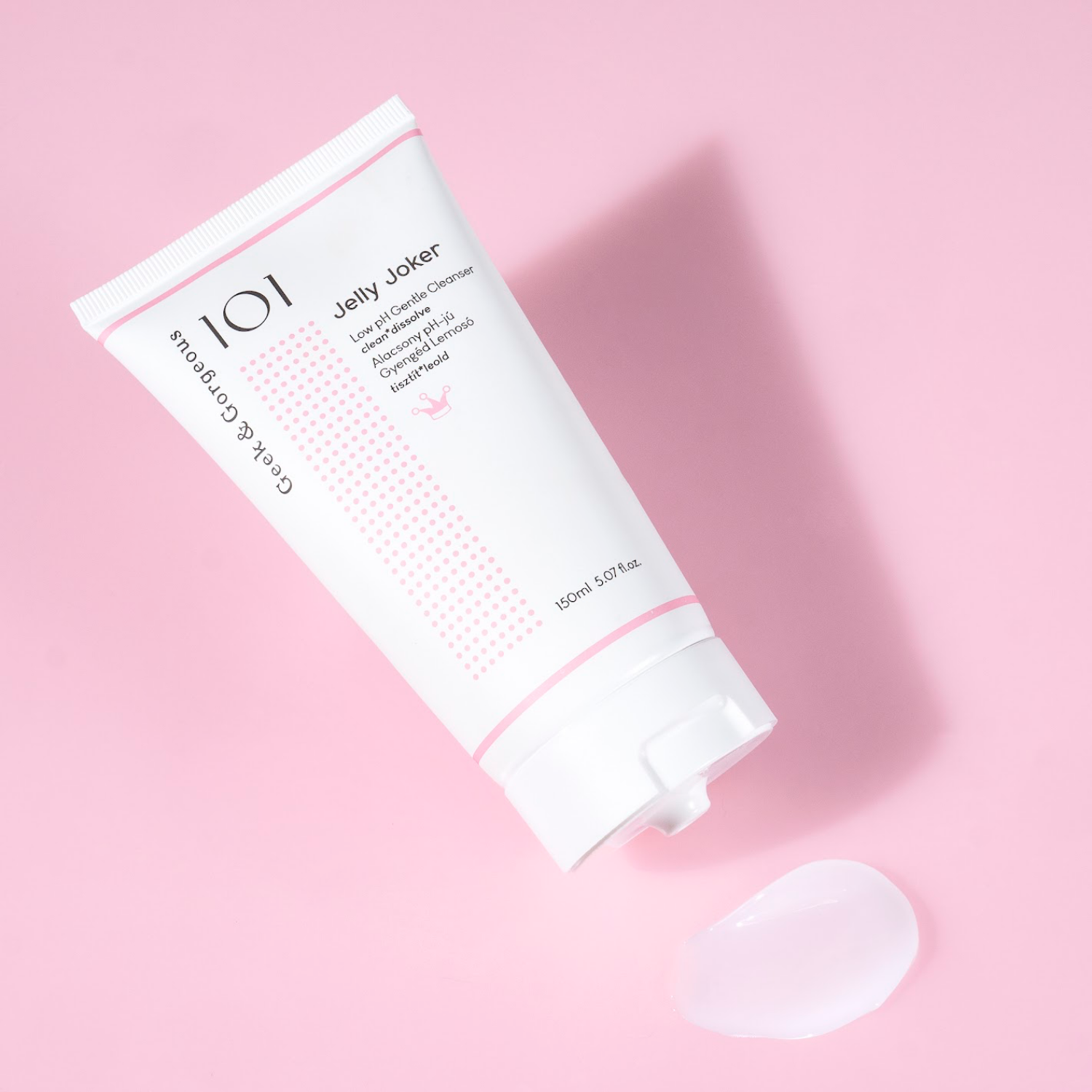 Geek & Gorgeous - Jelly Joker - jemný čistiaci gél na tvár s konzistenciou želé. Obsahuje jemné čistiace zložky, ktoré účinne odstraňujú make-up a nečistoty z povrchu pokožky bez narušenia jej ochrannej bariéry a bez pocitu pnutia. Je obohatený o hydratačné cukry, ako aj panthenol a alantoín, ktoré zmierňujú podráždenia a upokojujú pokožku. Prípravok je určený pre všetky typy pleti. Má pH 5-5,4. Gél má vegánske zloženie.