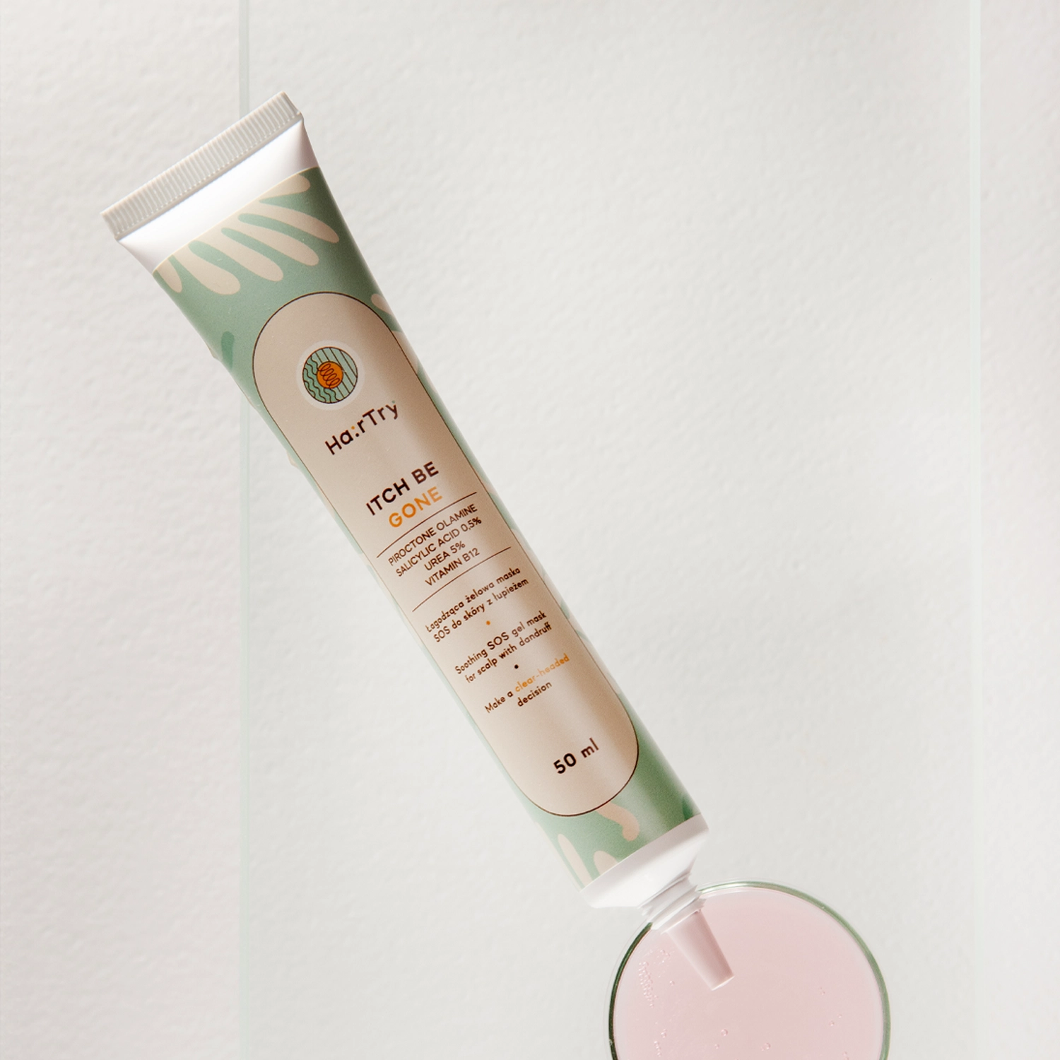 - Gélová maska na pokožku hlavy s olamín pyroktónom a kyselinou BHA