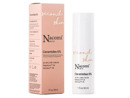 Nacomi - Next Level - Ceramides 5 % - Sérum s ceramidmi 5% - pleťové sérum s ceramidmi. Obsahuje komplex SK-influx® V MB zložený z ceramidov, ktorý posilňuje hydrolipidovú bariéru, urýchľuje regeneráciu a chráni pred stratou vody. Komplex Dermaxyl® je kombináciou aminokyselín, ktorý hydratuje, vyhladzuje, spomaľuje proces starnutia a posilňuje ochrannú bariéru pokožky. Prípravok bol ďalej obohatený o panthenol, ktorý hydratuje, upokojuje podráždenie a začervenanie, olej Incha Inchi, ktorý urýchľuje proces regenerácie a olej z mučenky, ktorý regeneruje a vyživuje.