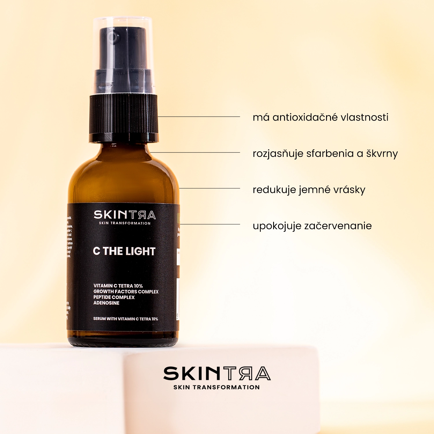 - 10% vitamín C (askorbyl tetraisopalmitát) - rozjasňuje pigmentové škvrny, stimuluje syntézu kolagénu, má protizápalové účinky a chráni citlivé nenasýtené mastné kyseliny v hydrolipidovej bariére